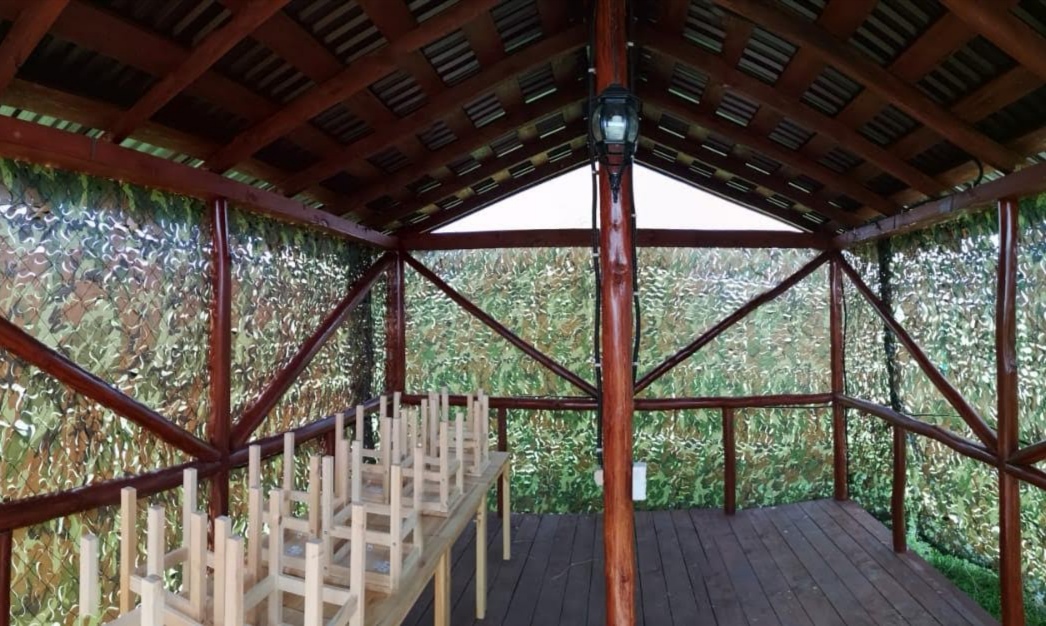 Самое тихое и уединенное место на нашей базе, самый конец дальнего рукава за всеми юртами. Вместимость беседки до 20 человек. В беседке есть столы, стулья, освещение и электричество, перед беседкой мангал. Беседка на берегу пруда, можно ловить рыбу. Стоимость беседки всего 1500 руб. плюс оплата рыболовных или гостевых путевок со всех участников.